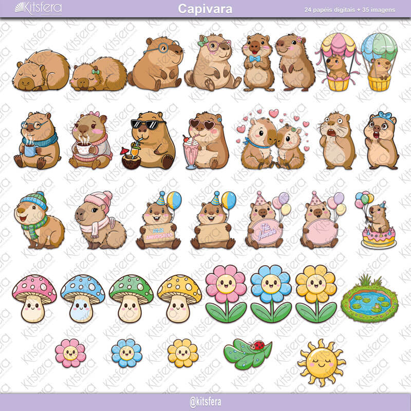 Descubra a tranquilidade e o charme do Kit de Papel Digital Capivara, onde natureza e criatividade se encontram para dar vida às suas ideias!