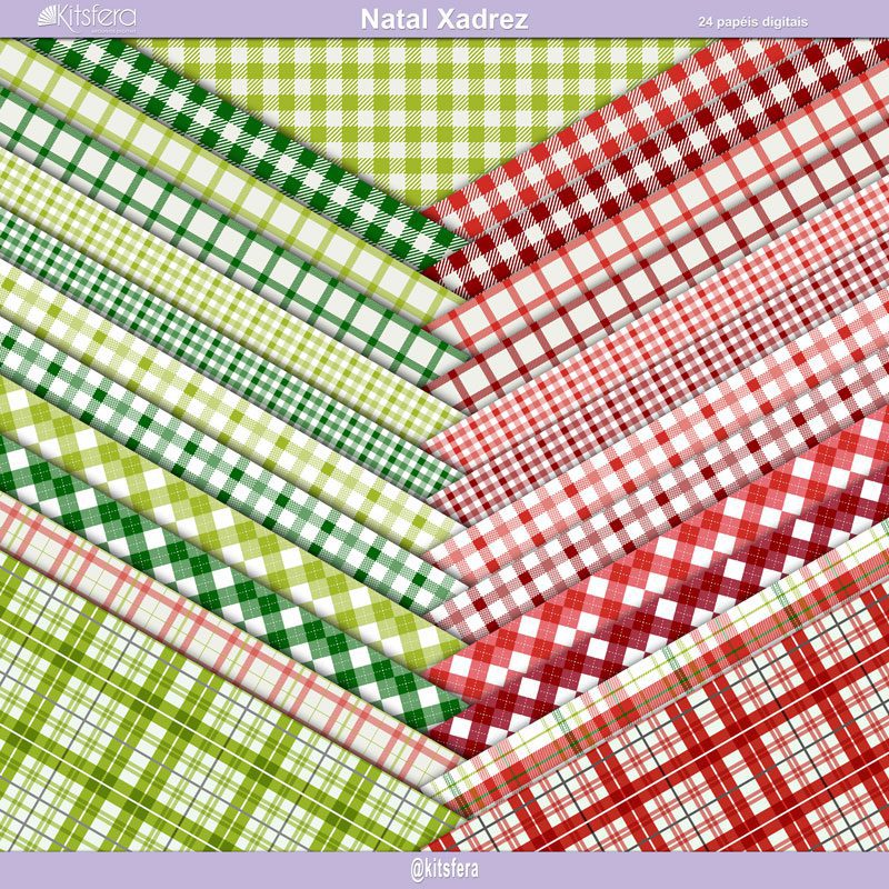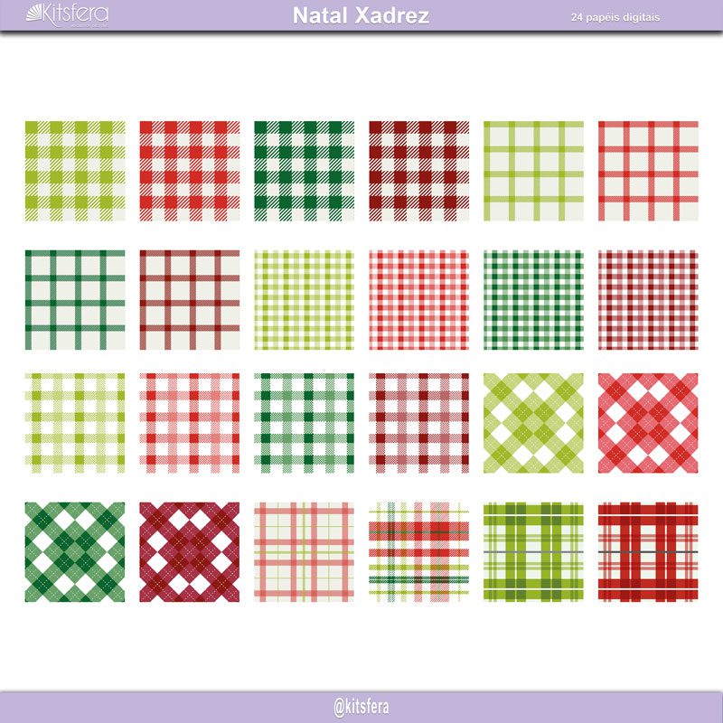 Este exclusivo Kit de Papel Digital Natal Xadrez contém: