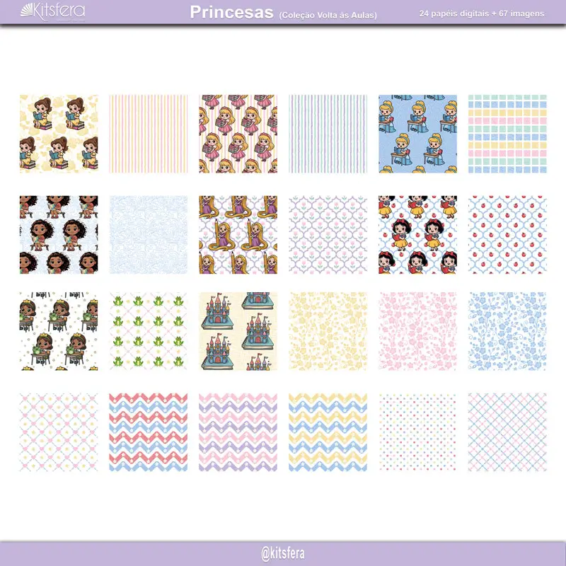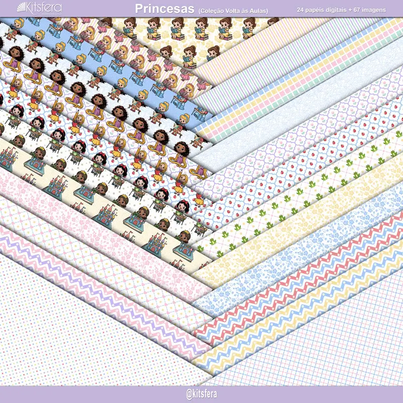 Especificações técnicas do Kit de Papel Digital Princesas – Volta às Aulas