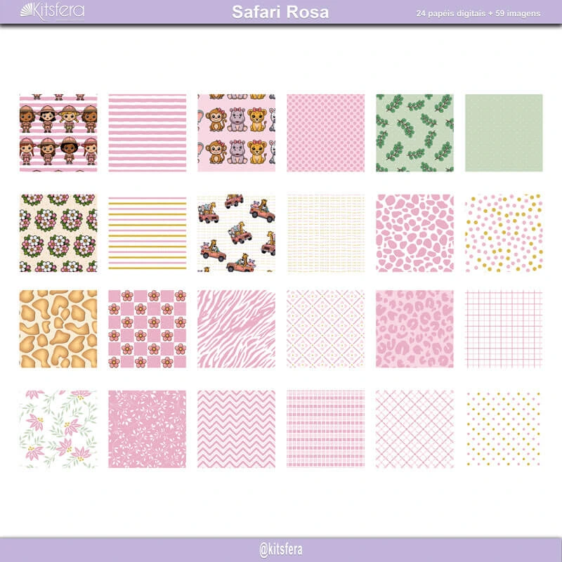 O Kit de Papel Digital Safari Rosa é sua chave para uma ampla gama de possibilidades criativas:
