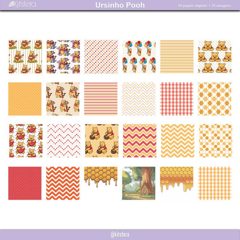 O Kit de Papel Digital Ursinho Pooh é sua chave para uma ampla gama de possibilidades criativas: