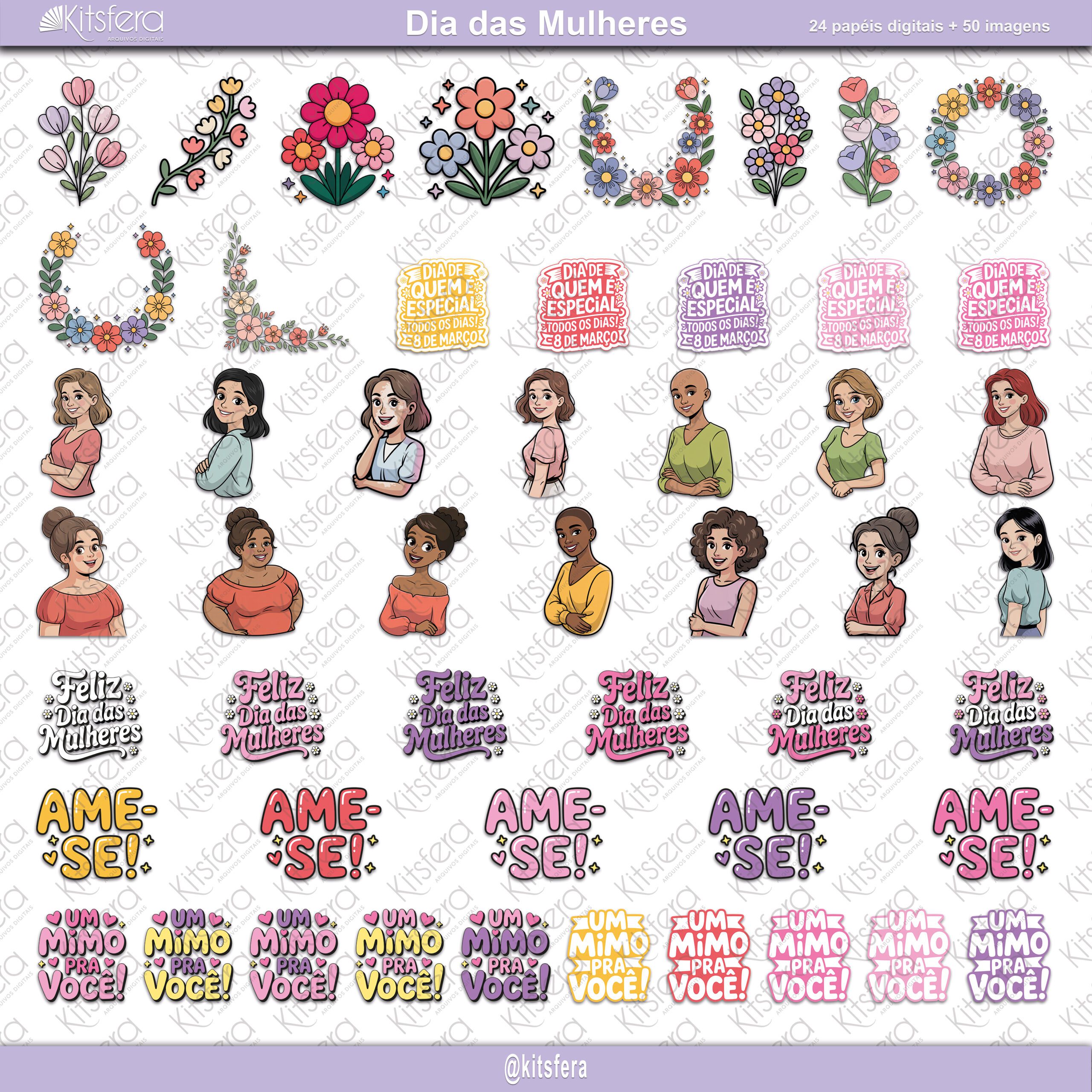 Especificações técnicas do Kit de Papel Digital Dia das Mulheres