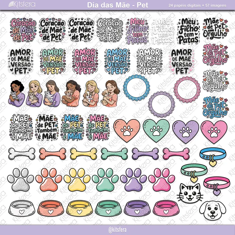 O Papel Digital Dia das Mães Pet é perfeito para quem ama incluir os animais de estimação em momentos especiais. Com estampas fofas de cachorros e gatinhos, este kit traz um toque carinhoso e divertido para seus projetos.